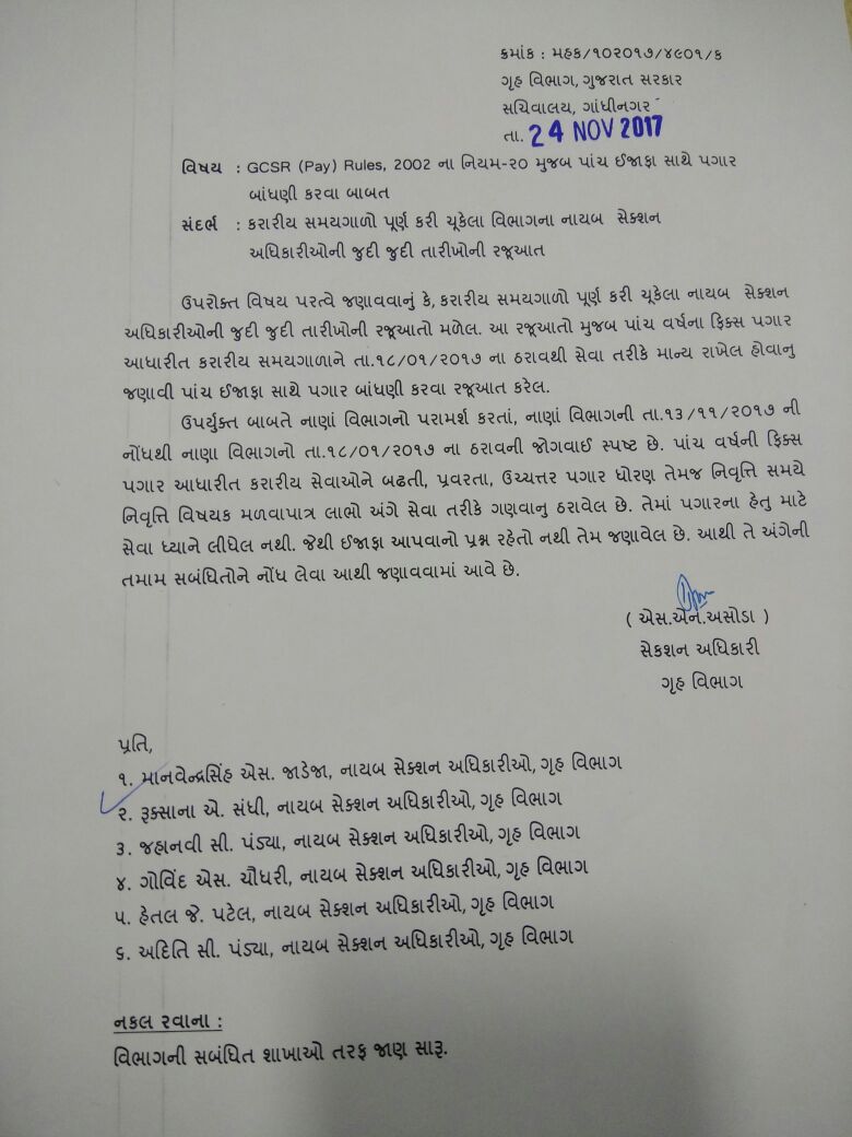 FIX PAGAR KARMCHARIO NA PAGAR BABAT MAHTVAPURN - SALANG NOKARI NA PARIPATRA ANTARGAT IJAFO MALVA PATRA NATHI TE ANGE VANCHVA LAYAK PARIPATRA DATE -24-11-2017.