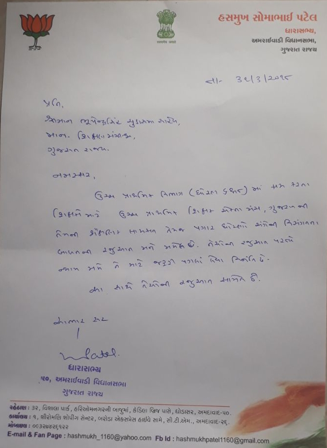 UCHCH PRATHMIK SHIXAKO NE SHAIXANIK LAYAKAT MUJAB PAGAR BABAT DHARASABHYA NO LETTER.