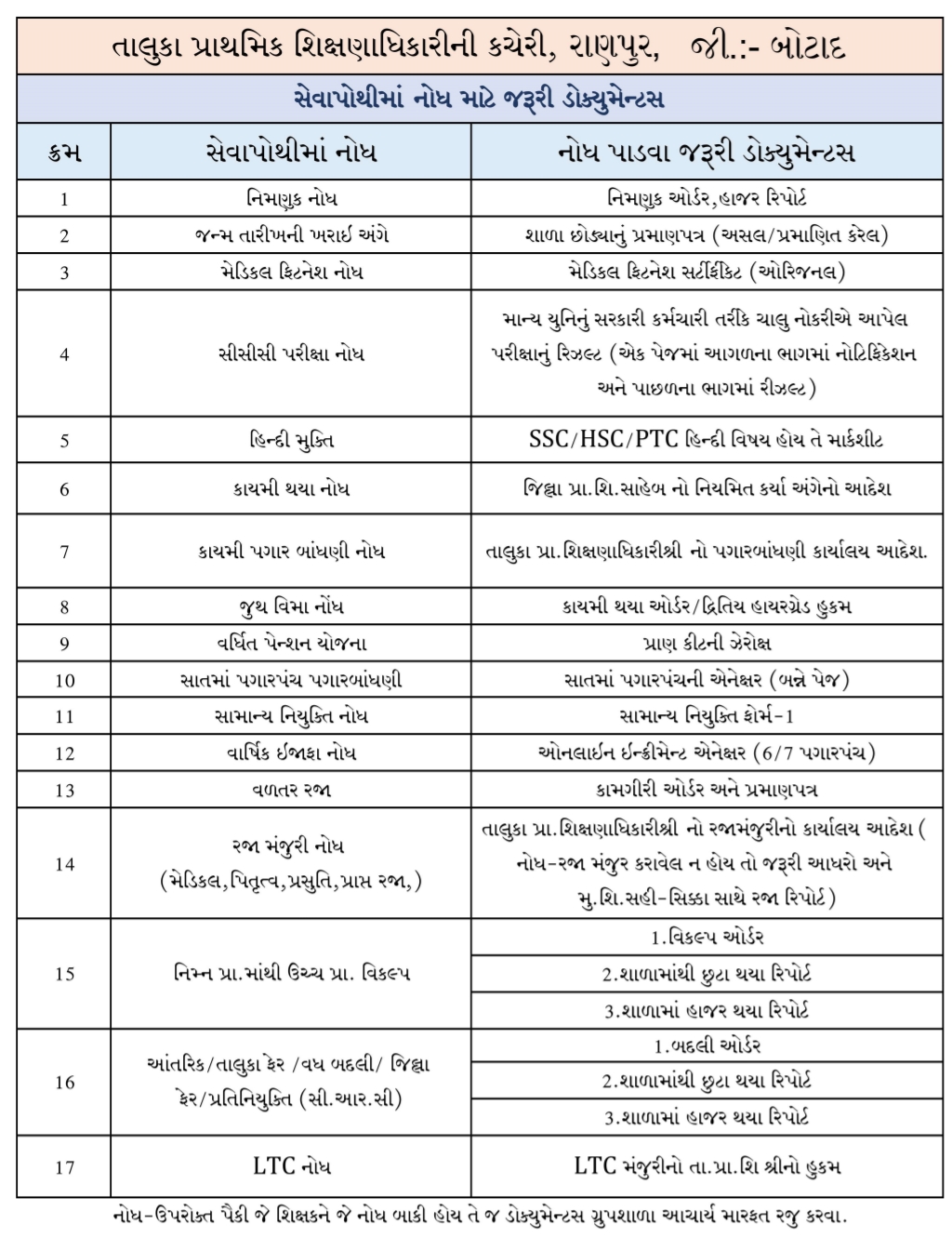 Sevapothi ma Nondh Padva Mate Jaruri Document ni Yaadi - PRIMARY SCHOOL TEACHER SERVICE BOOK ENTRY IMP DOCUMENTS LIST - USEFUL FOR ALL SCHOOL AND TEACHER.